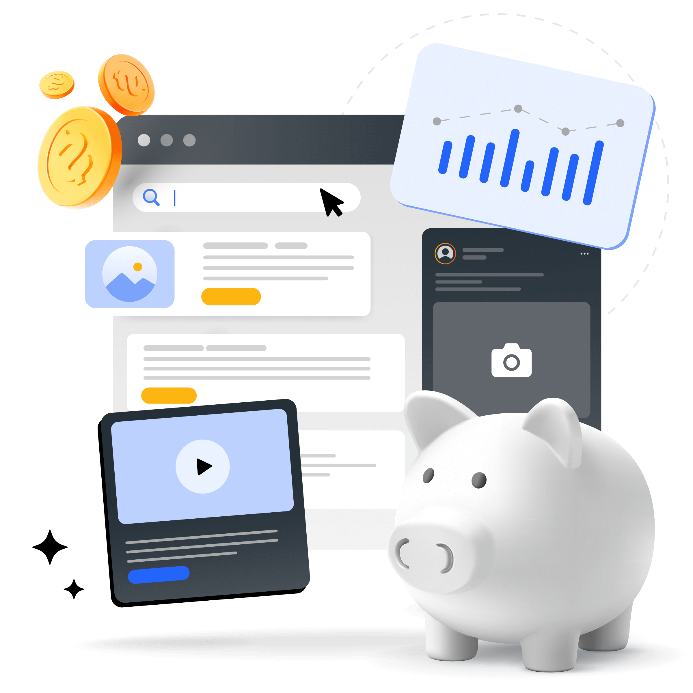 Search, social, audio, video — if it's big, juicy, and programmatic, we've probably got the chops to leverage it. Modern paid advertising offers eye-watering depth to help you reach who you need. Our tactical specialists create deep targeting plans, test the crap out of them, and optimize everything toward what's working. Here's what you can expect: